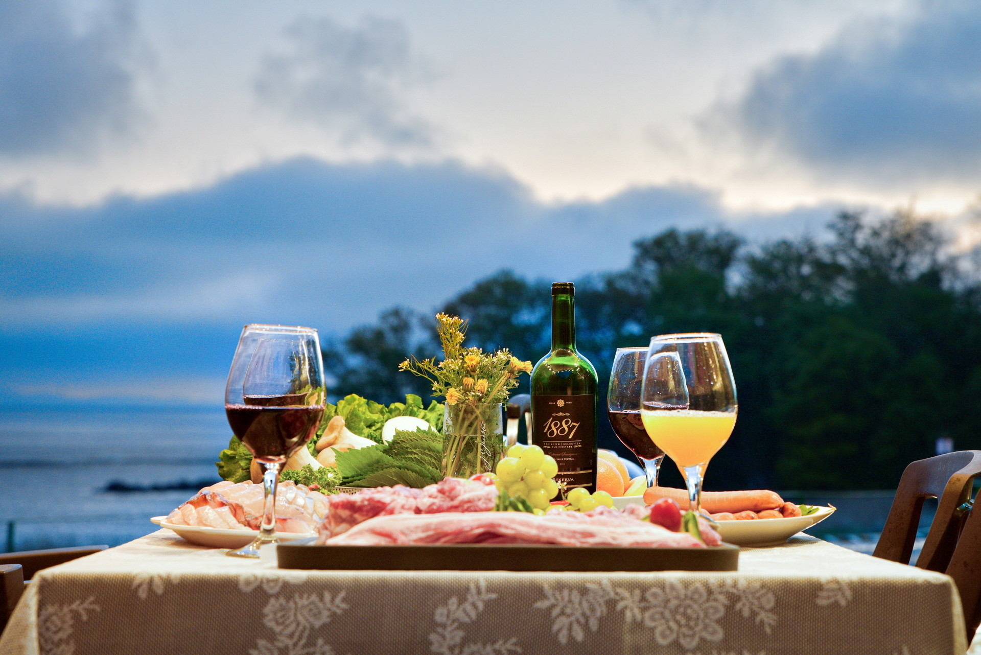 낙조의 명소에서 즐기는 바비큐